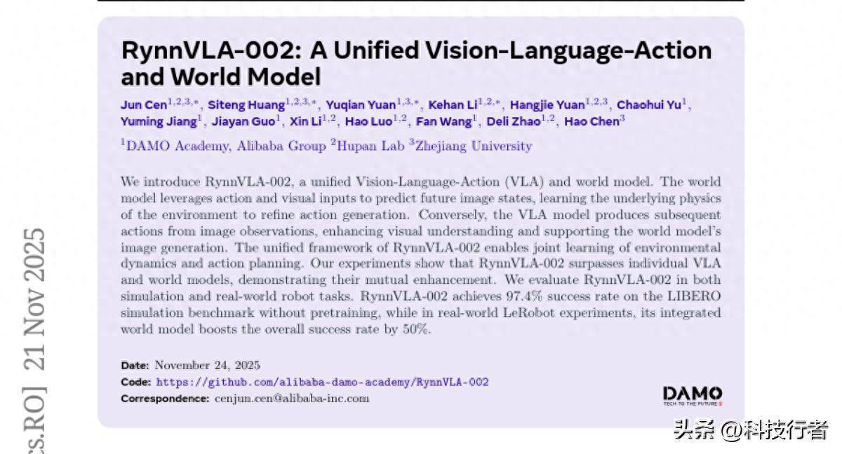 机器东说念主粗略像东说念主类一样既看得懂天下,又能预测将来吗?阿里巴巴达摩院、湖畔实验室以及浙江大学的盘考团队在2025年11月给出了笃信谜底。他们诞生了一个名为RynnVLA-002的调处模子,这项盘考发表在2025年11月的arXiv预印本平台,论文编号为arXiv:2511.17502v1,有羡慕深入了解的读者可以通过该编号查询完整论文。