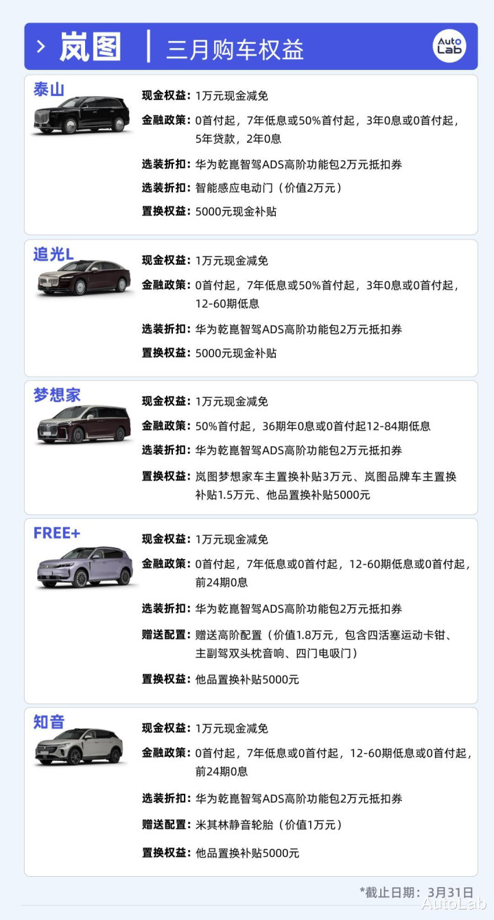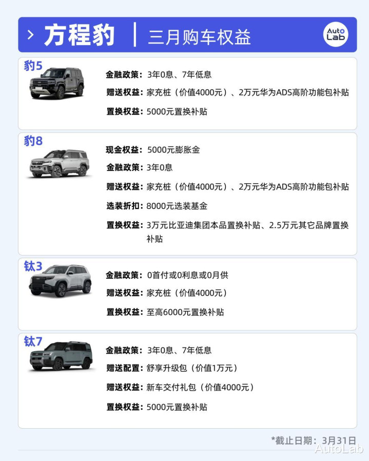 还是按照老例,咱们为公共归纳了3月各大车企的优惠策略以及权柄,供近期有购车需求的一又友们一定的参考。