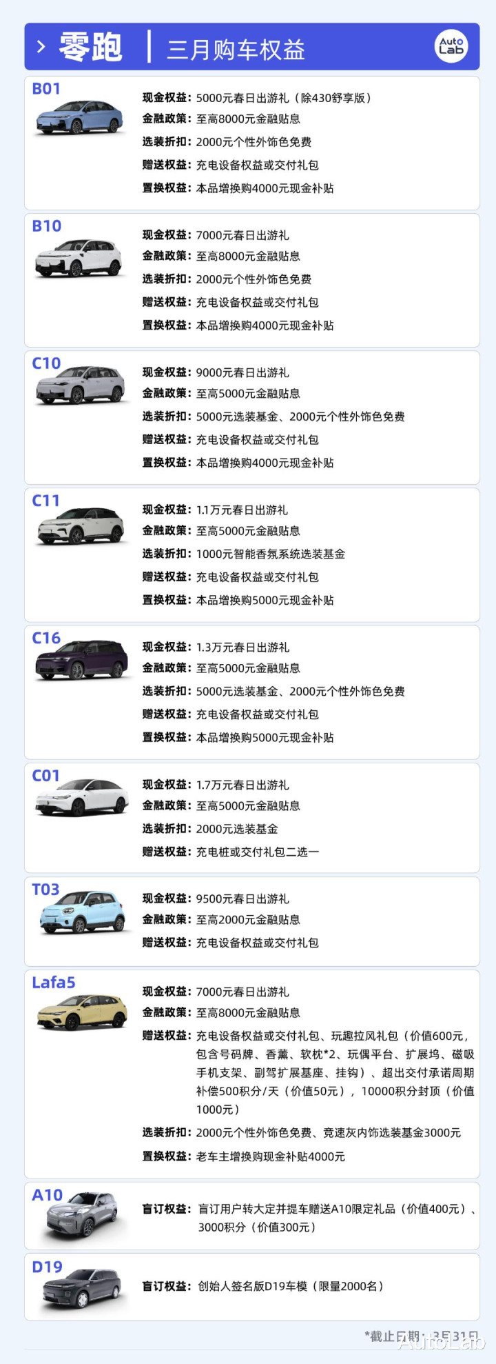 以C11为例,权柄金额比拟2月再加5000元,总数来到了1.1万元;而像是Lafa5、B10、B01等热销车型,也有2000元的上调。