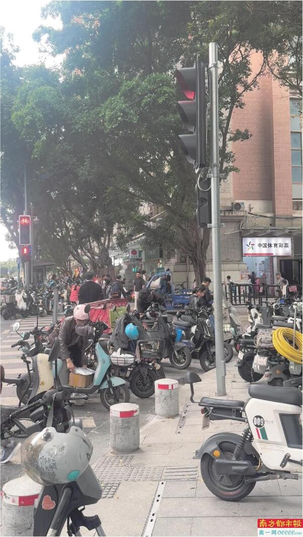 3月下旬,南齐记者初次探访华景北路。现场可见,本来供行东说念主通行的东说念主行说念,已成为了非生动车的临时泊车场,多半电动自行车等非生动车狼籍停放在东说念主行说念上,挤占了行东说念主的通行空间。不仅如斯,华景新城北门小区收支口处,也有不少电动自行车扎堆停放在路面上。