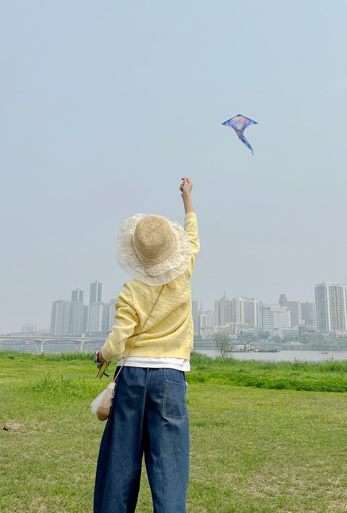 湘江惬心带上,学生在春假里放风筝。记者/戴凛 摄