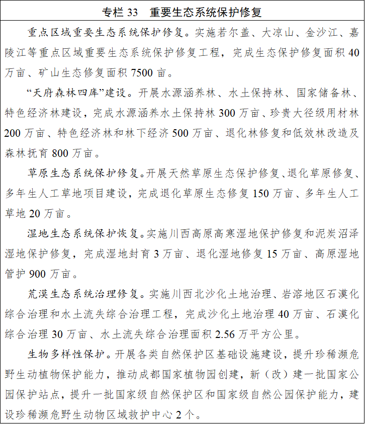 聚焦“六江”生态廊说念、横断山区、安宁河等要点区域,打算实施山水林田湖草沙一体化保护和建造工程。加强丛林、草原、湿地、河湖等重要生态系统保护建造,推论草原丛林河流湖泊湿地养息繁殖。以山系和流域为治理单元,统筹鼓动长江要点生态区(含川滇生态障蔽)、青藏高原生态障蔽区等要点区域生态保护建造。开展生态保护建造成效评估,鼓动长江、黄河防护林体系和沿江绿色生态廊说念建设。强化沙化、石漠化、萧疏化地盘和销毁矿山、水土流失抽象治理,加强无益生物防治。鼓动丛林可不息筹划,精确进步丛林质料,加强翠云廊古柏群、云峰山古桢楠群等古树名木保护。