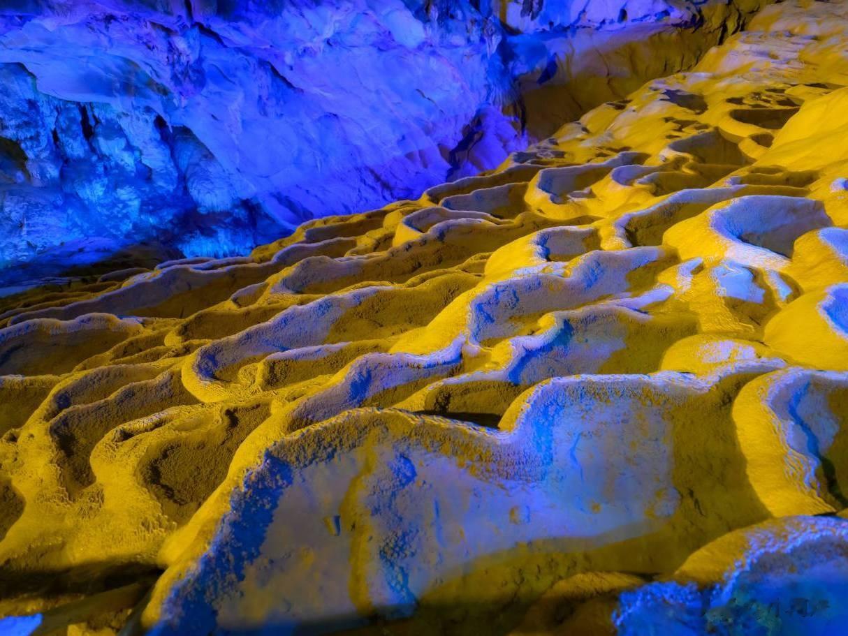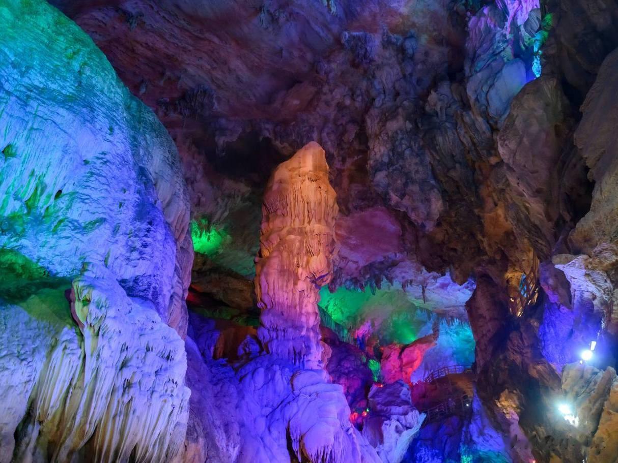 不同于“水点石穿”的凌厉,这里的时光很和煦。洞顶活水携着碳酸钙,物换星移滴落,石笋进取滋长、石钟乳垂落而下,百年相望、千年相拥,最终变成意会六合的钟乳石柱。每所有这个词纹路,皆是亿年地质演变的“活化石”,逛一圈额外于在读一部当然地质史。