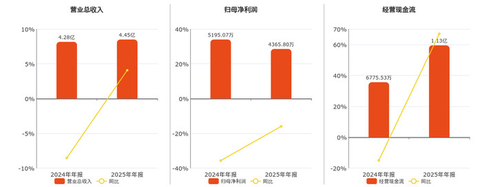 公司贸易总收入为4.45亿元,在已清楚的同行公司中名挨次133。归母净利润为4365.80万元,在已清楚的同行公司中名挨次108,较昨年同论说期归母净利润减少829.27万元,同比拟昨年同时下落15.96%。场合动作现款净流入为1.13亿元。