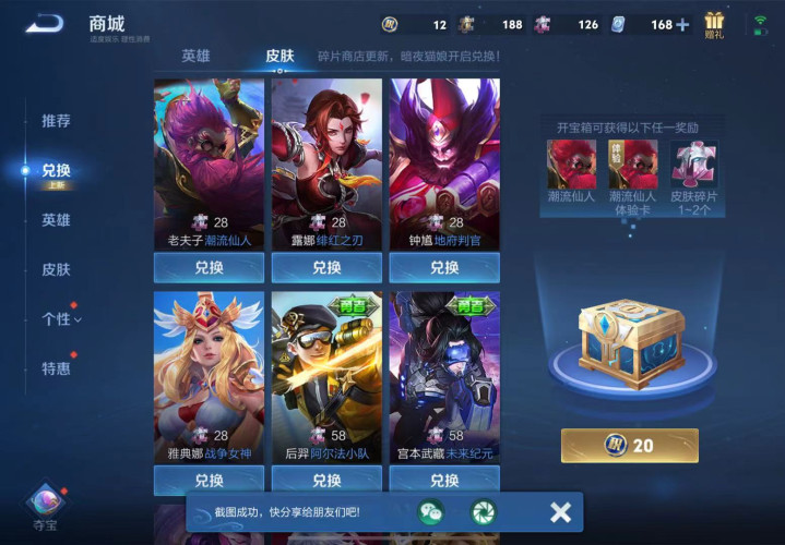 这三款皮肤都是碎屑商店的矿藏,各人有碎屑的话一定要优先换。另外,最近碎屑商店还加入了敖隐的赤刃凌霄、孙权的径山谋武等新皮肤,也值得心境。好了,快去碎屑商店望望吧!