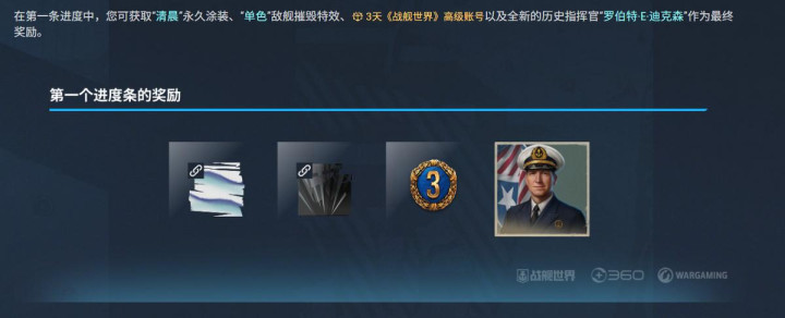 黄金周之后,5月1日珊瑚海海战通行证无缝衔尾。该通行证相同15级,免费经过可拿“黎明”弥远涂装、“单色”恣虐殊效、3天高等账号,最终奖励为全新登场的历史指引官,M系的罗伯特・E・迪克森,奖励塌实。要是使用金币解锁第二经过,还可赢得M系六级终结舰莫纳根。