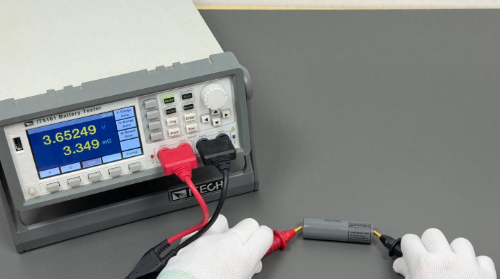 使用 ITECH IT5101 电板内阻测试仪测得内阻为 3.35mΩ。